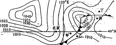 (3)? 4分?①(2分)?①地处于冷锋锋后,可能多锋面雨(2分)