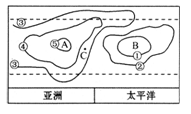 A.以温带季风气候为主,气温日、年较差小 B.嫩江及其支流汛期长,封冻期短 C.山地垂直地带性显著,基带为温带草原带 D.平原面积较大,山脉多呈东北—西南走向 4、单选题 读图,为1月份海平面等压线图,回答问题。 |