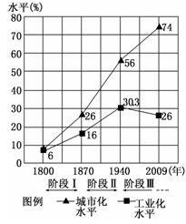 3、单选题 图为某国工业化、城市化进程比较图,回答下列问题。