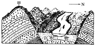 4、单选题  下面是某地区地质构造剖面及地面景观示意图。读图回答1~2题。