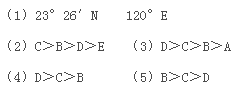(2)分析图中B.C.D.E四点的正午太阳高度角,按大小顺序用“>”排列出_________ _。