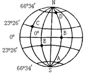 2、综合题 读图,C点所在经线为本初子午线,当A点正午太阳高度角为0°时,回答下列问题。(10分)