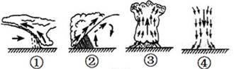 【小题2】台风是热带低压系统,气流强烈辐合形成的,图中只有③表示的是低压系统,故答案选B。