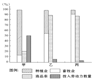 2、单选题 下图是“甲、乙、丙三个地区农业基本情况比较图”,完成下列各题。