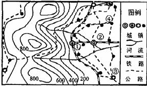 小题1:影响图中东部和西部地区城镇、交通线分布密度差异的主要自然因素是: