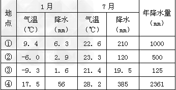 2、单选题 2011年是中国航天发射最多的一年。下图是我国四大航天基地位置图,下表是我国四个卫星发射基地附近多年气候资料统计数据。读图与表回答1~2题。