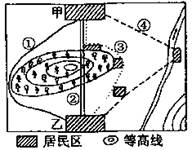 4、单选题  要在图中甲、乙两县城之间修一条公路,从经济、社会效益综合考虑,四个方案中最合理的是