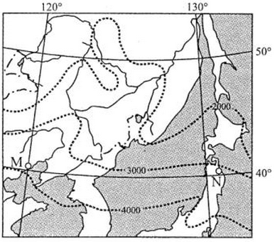 【小题1】导致图中M、N两地≥10℃积温不同的原因是( )