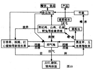 ①延长产业链,提高产品附加值 ②疫弃物资源化,降低环境污染 ③使用有机肥料,发展绿色生产 ④使用沼气能源,减少植被破坏 ⑤促进餐饮、休闲旅游等第三产业的发展 A.①②③ B.③④⑤ C.③④⑤ D.②③④ 2、综合题  下图所示区域人口密集,其中甲市出产的白酒驰名中外。酿造该种白酒的原料主要为生长在甲市周边区域的糯红高粱。为了确保白酒品质,当地种植的糯红高粱一般不施用化肥和农药。为了扩大产量,农业专家曾尝试在他处种植糯红高粱,但离开原产地仅十数公里,便会出现质量变差、减产等问题。 3、单选题  洞庭湖平原鲜活的肉类蛋禽鱼虾可供给港澳市场,主要依赖于(?) 4、综合题  某城镇周围的农民要发展小麦、果林、乳牛、渔业、等农业生产,请在图中A、B、C、D、处合理安排,并说一说你的理由。(12分) 5、单选题  南昌市郊区某村,利用塑料大棚生产蔬菜,并同时开办了养猪场,如图所示。据此完成1~3题: |
