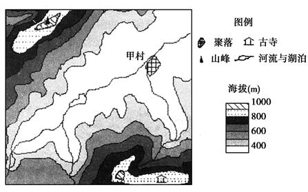 【题文1】据图可知,图中的山峰海拔为900~1000米,甲村的海拔为300~400米,故上述两地的相对高度为500~700米,可能是650米。