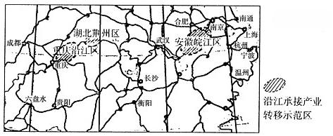 5、单选题 2014年春节过后,长三角、珠三角等经济发达地区企业遭遇招工难,企业在普遍提高薪酬待遇之后仍然“一工难求”。下图是“我国沿江承接产业转移示范区位置示意图”,完成下列各题。