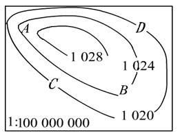 ⑸由于绘图同学的粗心,图中有一处等高线数值被标错,请指出并标注正确数值。(2分)