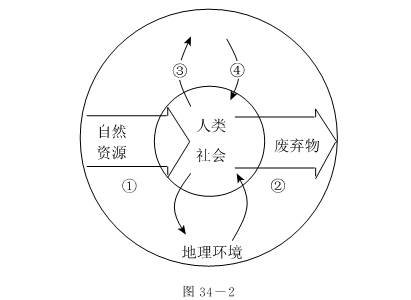 本题解析:图中①环节表示人类从自然环境中获取物质和能量,只有A项的水土流失是因为人类从环境中索取资源过程造成植被的破坏而引起的。酸雨是人类向大气排放硫氧化物和氮氧化物过量而引起的,应为图中的②环节。