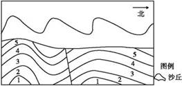 点评:本题难度不大,学生只要读图,利用图示的沙丘分布、沙丘形态可判断风向;岩层的弯曲判断背斜、向斜;岩层断裂为断层等内容,结合选项一一分析即可,注意做题要细心。