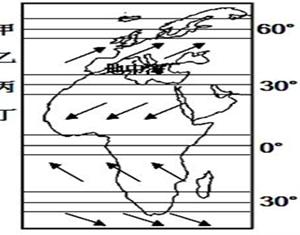 【小题1】根据气压带和风带的分布规律,甲应为副极地低气压带,乙为盛行西风带,丙为副热带高气压带,丁为东北信风带。