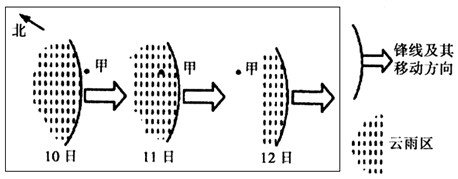 5、单选题 锋线指锋面与地面的交线。下图反映某地区2011年3月10日~12日的锋线移动情况。读图回答1~2题。