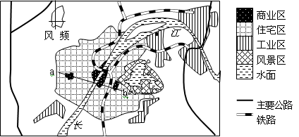 5、单选题 图是我国某城市简图,读图完成下列各题。