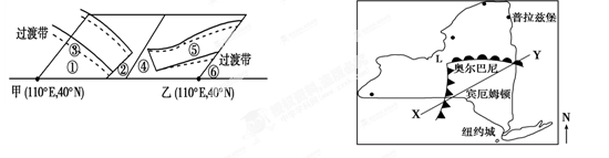 A.XY相当于②④ B.宾厄姆顿相当于④ C.奥尔巴尼相当于② D.普拉兹堡相当于⑥。 参考答案: 本题解析: 本题难度:一般 2、单选题 下图为甲地所在区域某时刻高空两个等压面P1和P2的空间分布示意图,图中甲、乙两地经度相同。完成下列各题。 |