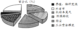 主要来自工矿企业燃煤排放、工业喷涂挥发、机动车尾气排放、道路扬尘等(答出3点给6分)