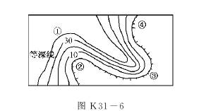 3、单选题  图31-6为某海湾放大图,其中最适宜建港口的位置是