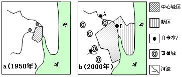 (1)图b与图a相比,城市用地规模明显?,城市人口数量呈