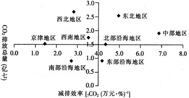 5、单选题 读我国区域产业CO2减排效果比较示意图,回答1—2题。