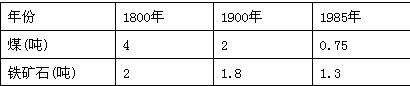 3、单选题 下表为世界钢铁工业发展过程中每炼1吨钢所需原料、燃料的变化资料。据表完成下列各题。