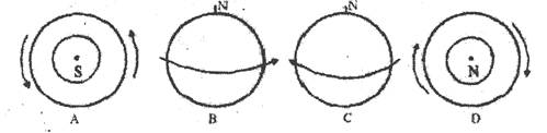 3、单选题 下列四帽图中,能正确表示地球自转方向的是(? )