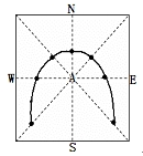 【小题2】根据一年中日影的变化规律可知,夏半年日影变化角度大于180°,冬半年日影变化角度小于180°,春秋二分日影变化等于180°,所以图示季节应当是冬季,我国该地的昼长小于12小时,由图中日影变化角度的范围大于90°,可知昼长还应该大于6个小时,故选项B正确。