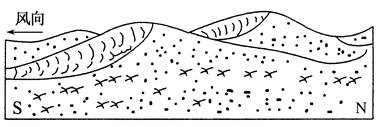 本题解析:图示沙丘地貌,风是由缓坡吹向陡坡;树要种在背风坡,即南坡,可阻挡沙丘前行。选C正确。 考点:主要考查风力作用与沙丘治理。