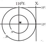 (1)经线X的度数_____________(大于、小于或等于)1300