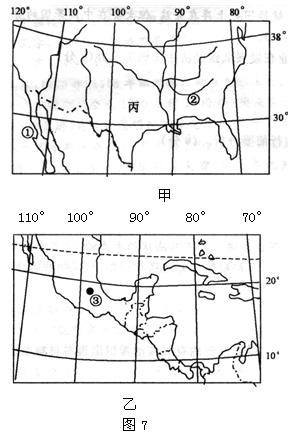 ? (1)简述①、③两地的气候特征及成因。(10分) (2)下表内容是图7中丙国②河流域早期的开发利用情况,简述这种开发利用方式对地理环境的影响。(14分)