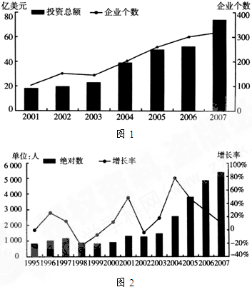 2、单选题  读2001—2007年我国G城市R国外资企业注册及投资情况坐标图和1995—2007年我国G城市R国人口数量及增长率坐标图。回答各题。
