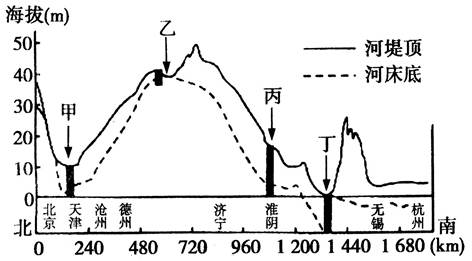 2、单选题 读京杭运河地形剖面图,完成下列问题。