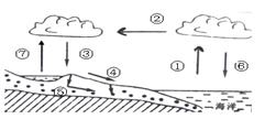 【小题1】下列选项中属于组成水的海陆间大循环的环节的是( ) A.①②③④⑥ B.②③④⑤⑦ C.①②③④⑤ D.②③④⑥⑦