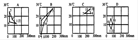 2、单选题 下面四幅图分别代表一种气候类型,哪幅图代表铁岭的气候类型( )