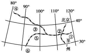 A.北极圈以北范围增大,南极圈以南范围缩小 B.地球上有太阳直射的范围缩小 C.北极点出现极昼的天数增加 D.中纬度地区夏季昼将增长,冬季夜将增长 2、单选题 如图示意我国部分铁路的分布情况。读图回答下列各题。 |