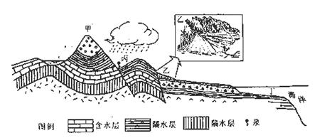 (3)(3分)乙地与丙地均有地下水(泉)出露,按照埋藏条件,乙地为 水,丙地为 水;两地相比,水质较好、流量较稳定的是 地。