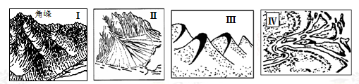 本题解析:图I为冰川侵蚀地貌,图III为风力沉积地貌,图II与图IV为流水沉积地貌,分别为山前冲积扇和河口三角洲。故C正确。