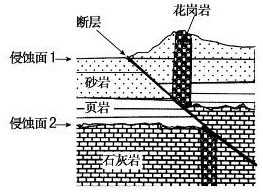 ①断层 ②砂岩 ③页岩 ④花岗岩 ⑤侵蚀面2