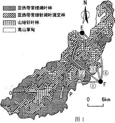 A.Z B.Q C.W D.X 4、综合题 读某地地形图,回答下列问题。 5、综合题 图1为我国某山区植被分布,该地海拔200、2100米。读图并结合所学知识完成下列问题。
