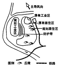 A.甲区域 B.乙区域 C.丙区域 D.丁区域 3、单选题 目前我国一般用污染系数(污染系数=风向频率/平均风速)来定量反映风对大气污染的影响。下图为我国M城市多年污染系数分布图(甲)和多年风向频率统计图(乙),回答1~2题。 4、综合题 读下面“我国某城市工业分布示意图”,回答以下问题。(16分) 5、单选题 下图是某城镇用地布局规划方案示意图。读图回答1—2题。 |