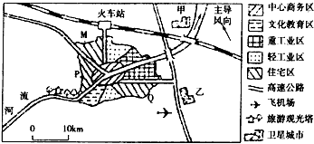 (3)甲;位于河流下游;位于与盛行风向垂直的郊外;水陆交通便利