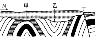 (2)写出图中各点的地质构造类型:甲__________,乙__________,丁__________