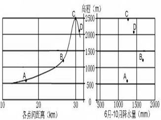 3、单选题 图为某山地降水量随高程变化图。读图,回答下题。