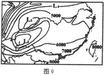 3、单选题  读“我国部分地区≥10℃积温等值线图9(单位:℃)”,完成问题。