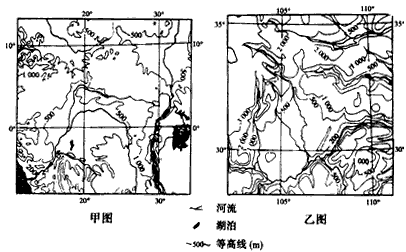 (1)甲、乙两图所示地区在地形上有哪些相似之处?简要说明判断依据。