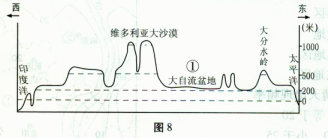 5、单选题 图8为澳大利亚沿28°S地形剖面图。读图,回答第22~ 24题。