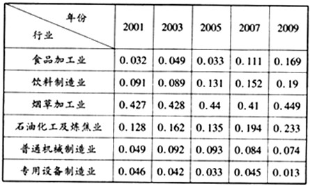 2、单选题 区位基尼系数越大,产业集聚程度越高。读中国六个典型制造业区位基尼系数表,回答1~2题。