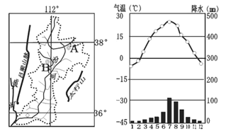 材料一 山西汾河流域图和A市的气候资料图。